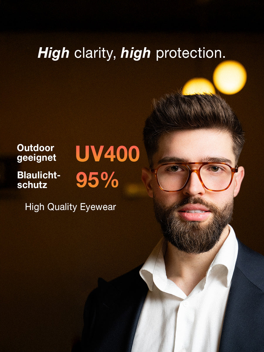 • Unsere Gläser bieten vollen UV-Schutz, also Schutz vor UVA- und UVB-Strahlung.
